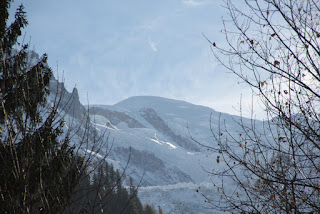 Chamonix sits in a deeply encased valley just below the 4808m summit of Mont Blanc, pictured below.